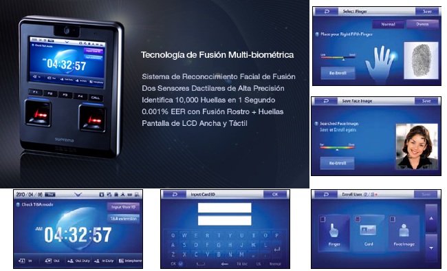 - Integra biometría de reconocimiento facial y de huella única y dual