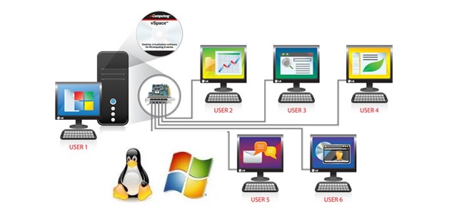 El Sotware de Escritorio vSpace NComputing, divide los recursos de la computadora en áreas de trabajo virtuales independientes, que dan a cada usuario su propia experiencia PC. vSpace permite conectar simultáneamente varios usuarios en un solo sistema operativo, Windows o Linux.