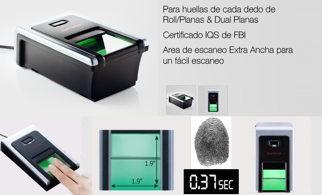 - Amplia área de imagen activa (46 x 46 mm) para fácil captura de dos huellas